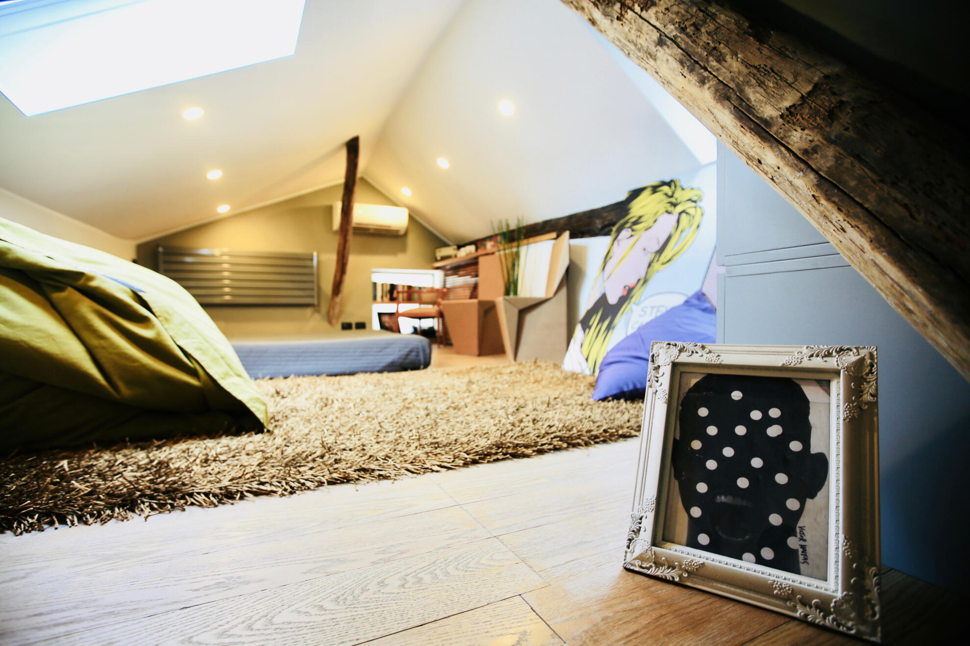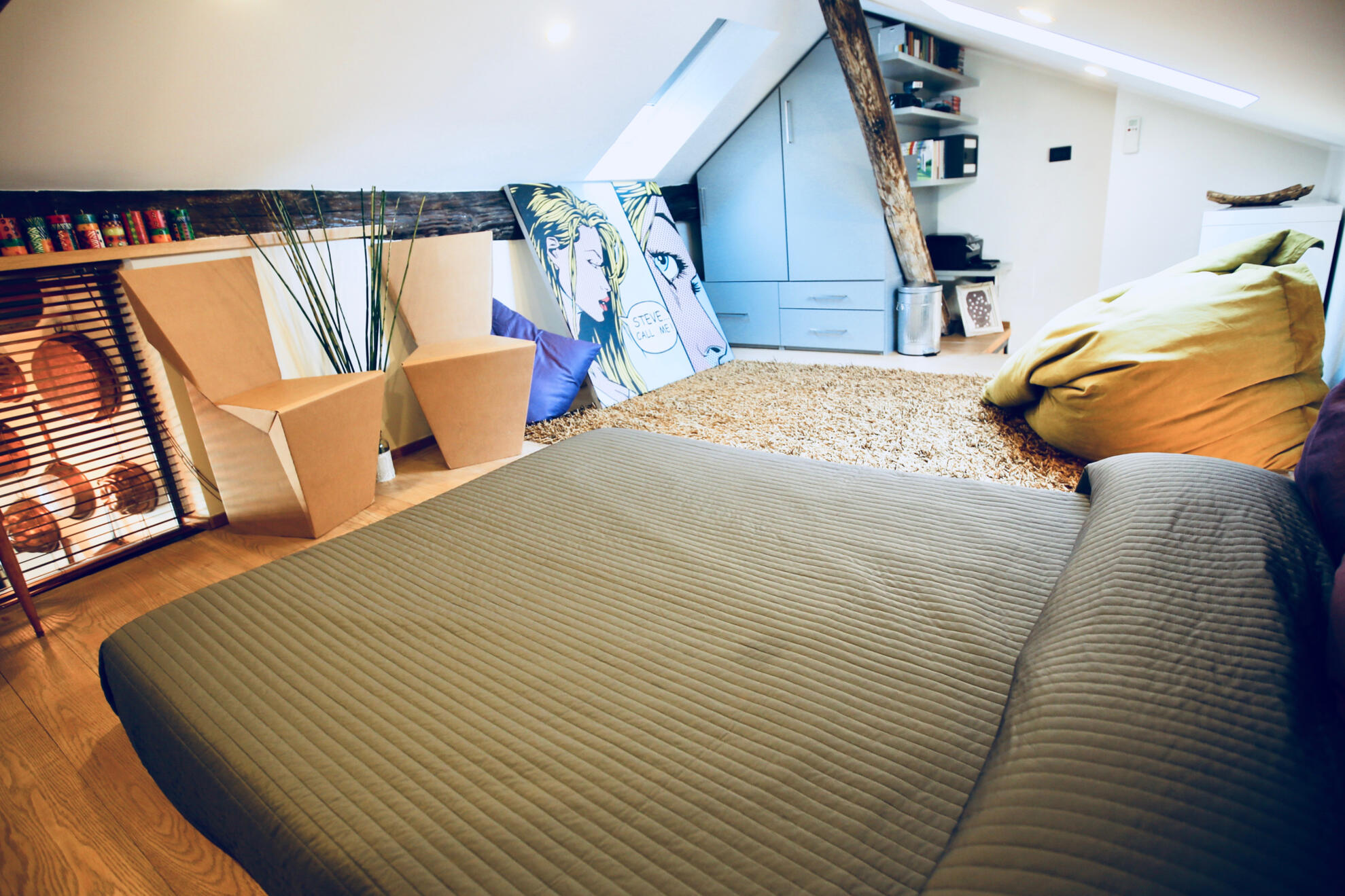 A cozy, light-filled space where design and warmth create a unique retreat.